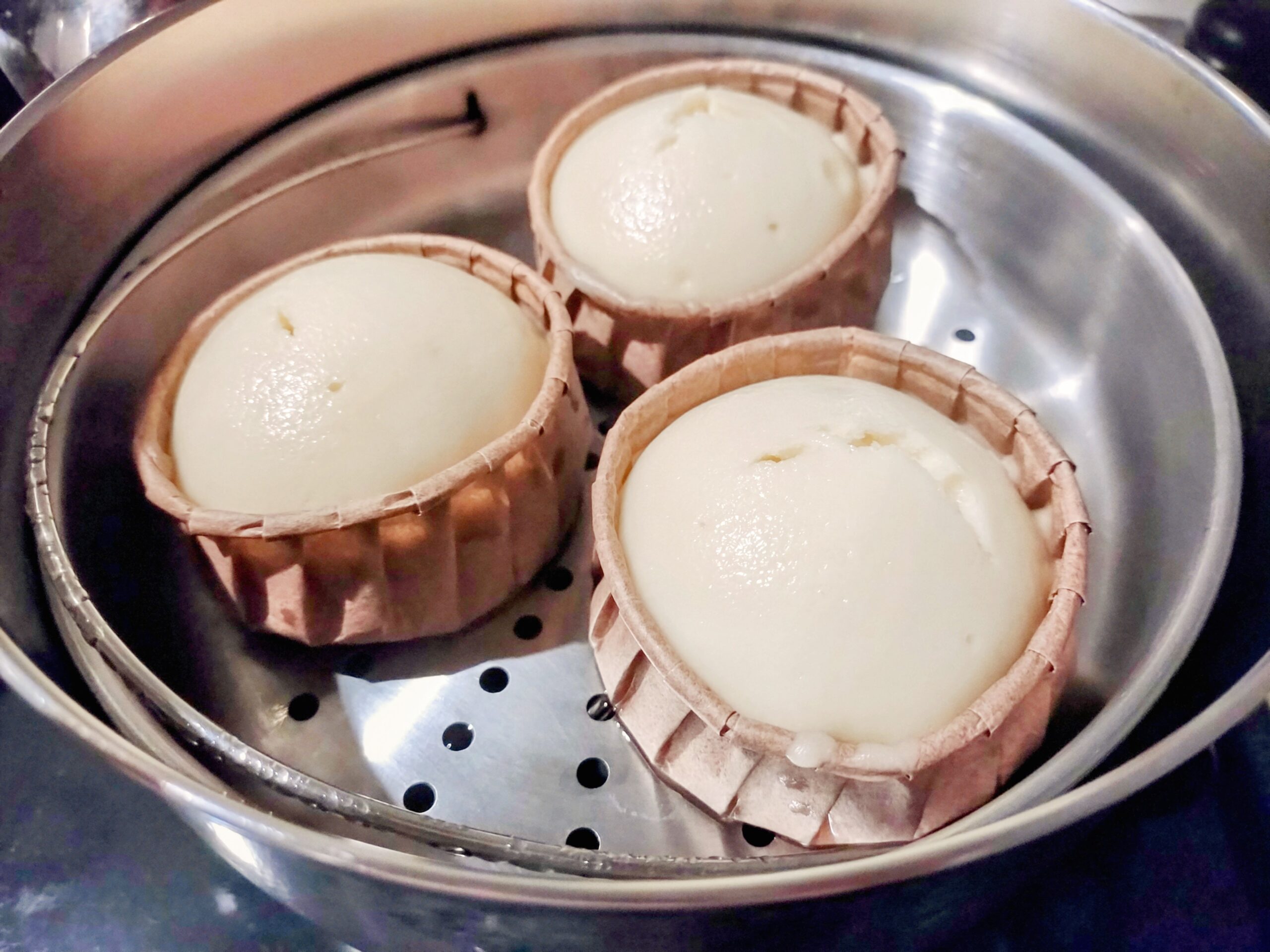 ③ 蒸気の上がった蒸し器で、中火で10分強蒸す。竹串を刺して生地がついてこなければOK。